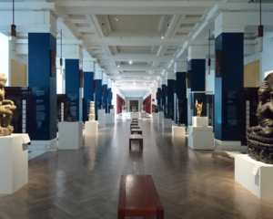 The galleries cover approximately 1,650m2 and, at 115m in length, are one of the largest spaces in the Museum. The galleries are not air-conditioned and relied on openable windows and general circulation of air to maintain environmental conditions. In winter months heat was provided by cast iron column radiators in the window reveals with minimal temperature control.